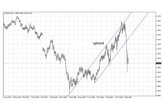الاتجاه هو اتجاه صاعد أو تنازلي يتميز بالنتيجة الصارمة لارتفاع الحد الأقصى والحد الأدنى، في حالة الاتجاه الصعودي، وانخفاض الحد الأدنى والحد الأقصى، في حالة الاتجاه الهبوطي. لا يعتبر الاتجاه الصعودي قد تم كسره حتى لا يتم اختراق الارتفاع أو الانخفاض السابق. وبعبارة أخرى، فإن الارتفاع أو الانخفاض التالي أقل من المستوى السابق. هذا هو المعيار الضروري للاتجاه التصاعدي. لا يعتبر الاتجاه الهبوطي قد تم كسره حتى لا يتم اختراق القاع أو الارتفاع السابق.
