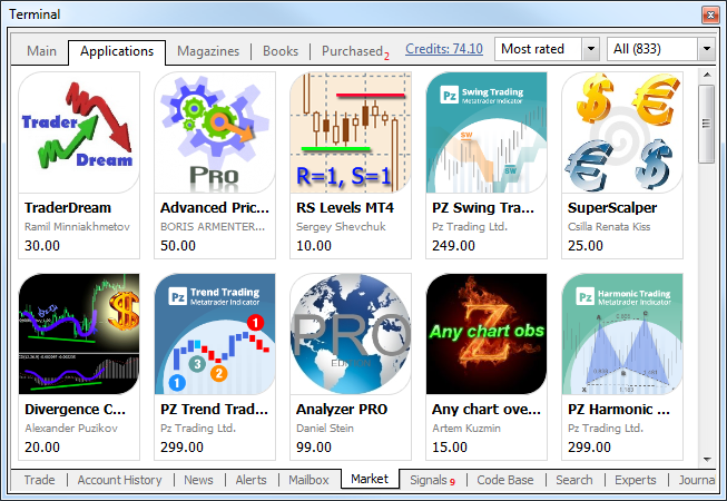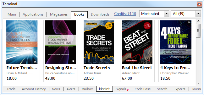 2. Market: Another new product category has been added to MetaTrader AppStore following trading and financial magazines - Books. Now, you can purchase the works of well-known traders and analysts along with trading robots and indicators. The range of books is increasing daily.
